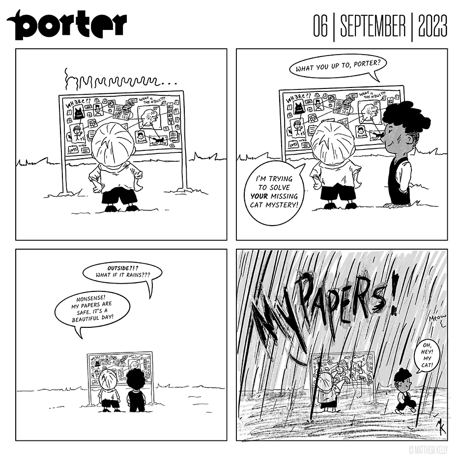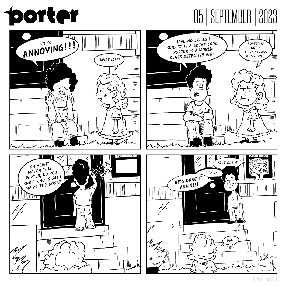Porter and friends enjoy goofs, gags and on occasion, MYSTERIES. Join Porter on his first little adventure in finding the vanishing cat.
